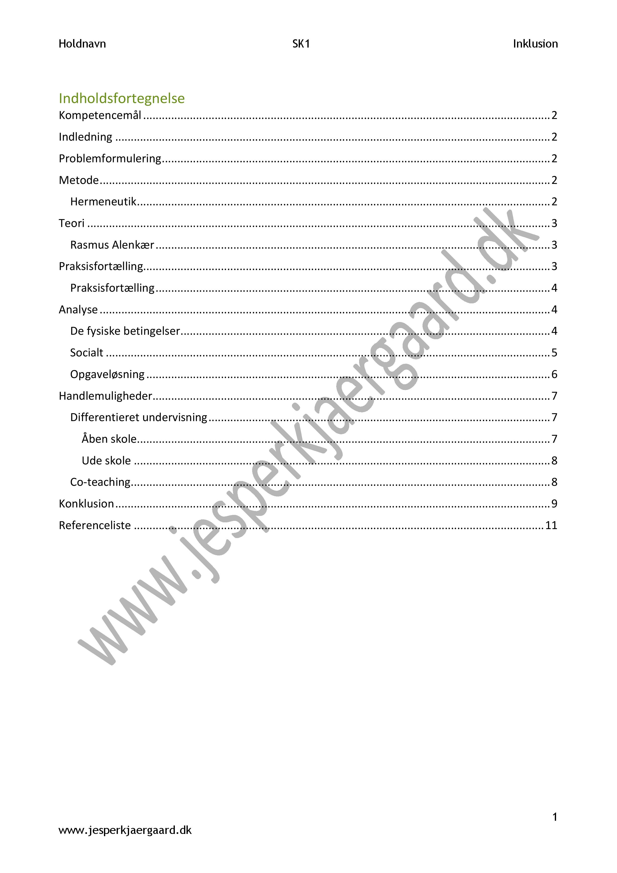 – På side 1, at lave indholdsfortegnelse. Hvis du bruger Word: Referencer -> Indholdsfortegnelse.