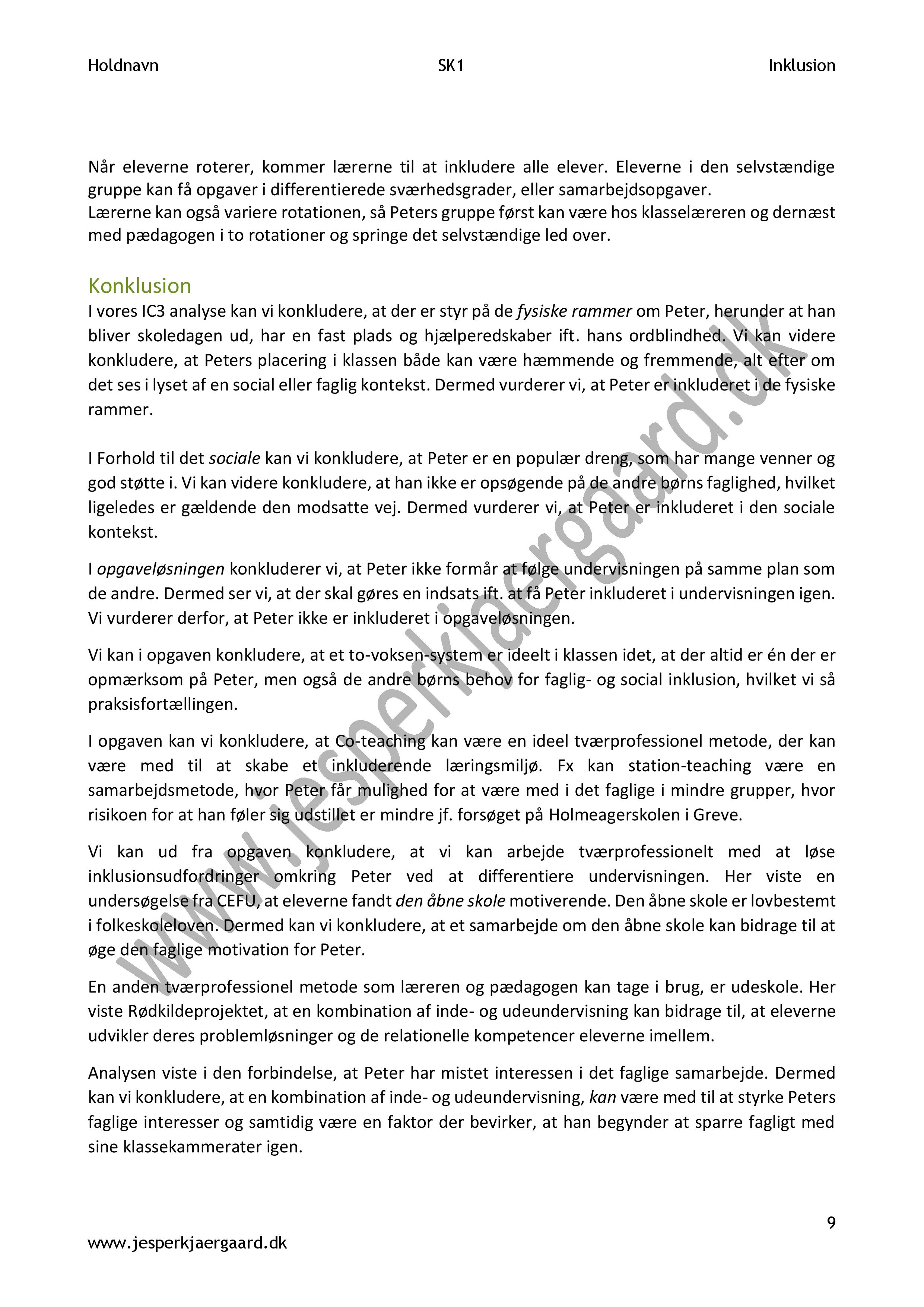 – En rød tråd igennem opgaven. Selvom man hver især bruger forskelligt sprog når vi skriver, så se om I kan rette det til. Så det til slut bliver endnu mere ens.